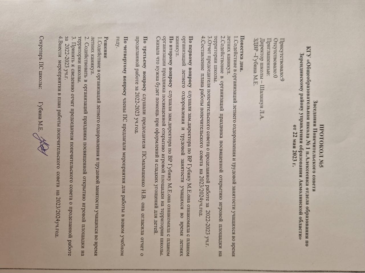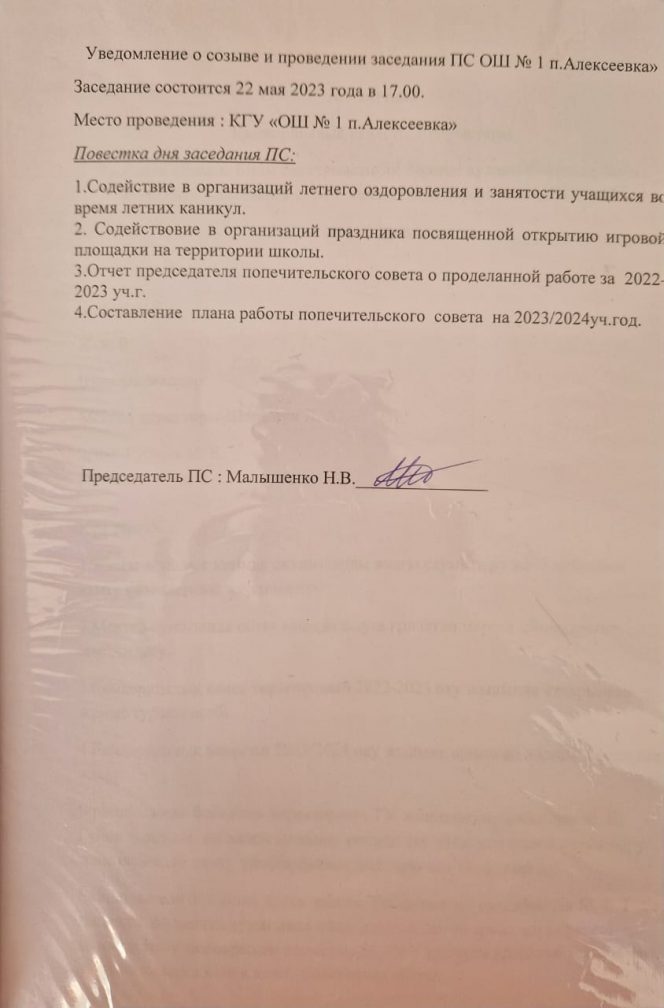 ПРОТОКОЛ №1-5 Заседания Попечительского совета
